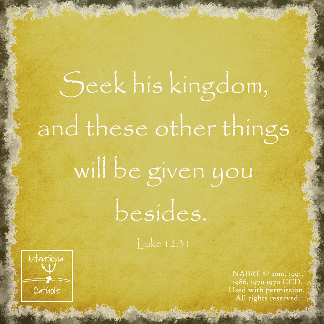 Of course we have to go get a job and take care of our homes and our families. The question is, where does that priority rank? What comes first? What is the overarching concern that structures my life? Is it getting the better job, the bigger house, the hot car, the position of influence? What is the single concern that comes to mind first whenever I have a decision to make?