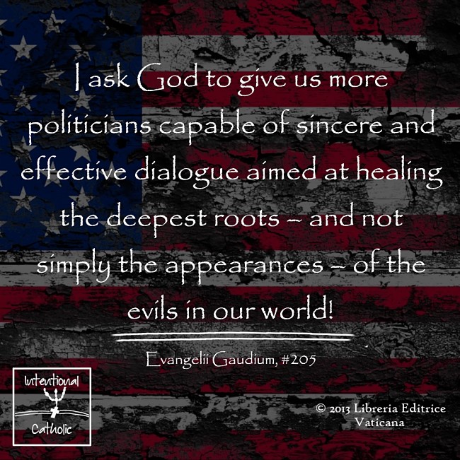 Here’s an interesting one. There’s a section in Evangelii Gaudium focused on the need to offer to others the same religious freedoms we expect for ourselves–particularly in regards to Islam. But the pope puts this cautionary stamp on it, too. This will resonate with many who lean right politically. It’s worth some real soul-searching on both sides of the question of religious freedom as to what that really means, and what the cost is, and to whom. Because religious freedom has to include both sides of the coin: freedom *from* religion and freedom *to* practice one’s beliefs. It’s inevitable that those two freedoms will come into conflict at various points. So we have to take great care in discerning how to respect one side without suppressing the other.