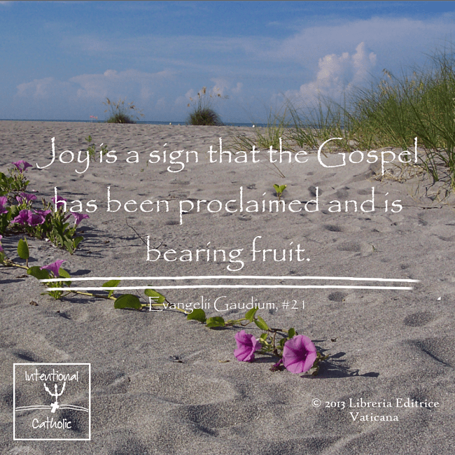 Until I started reading Evangelii Gaudium last fall, I had never thought much about the relationship between joy and faith. The very beginning of this apostolic exhortation consists of a list of very familiar Scripture quotes that I never before thought of in terms of joy.